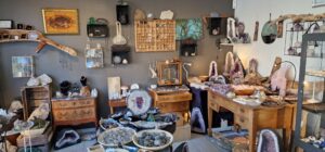I butiken finns också små och stora grottor med till exempel ametister.