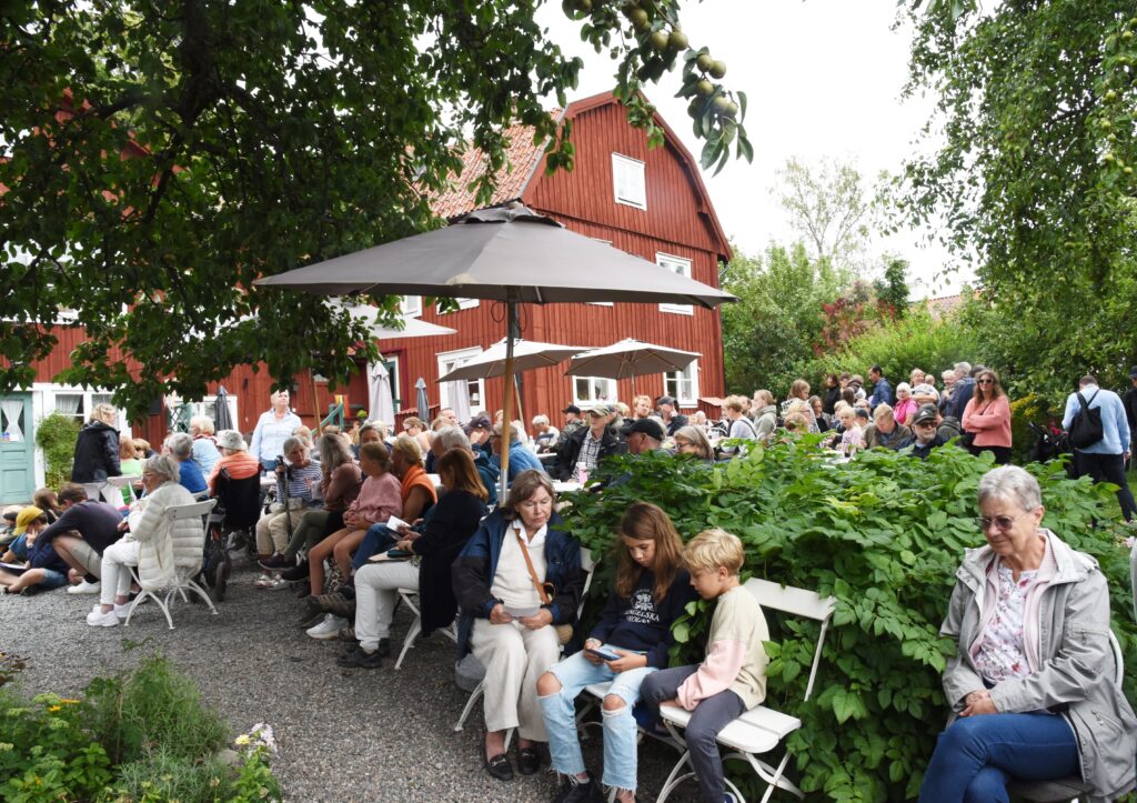 Åskådarna hade bänkat sig i hela trädgården med kaffe och kakor för att ta del av föreställningens premiär på lördagen.
