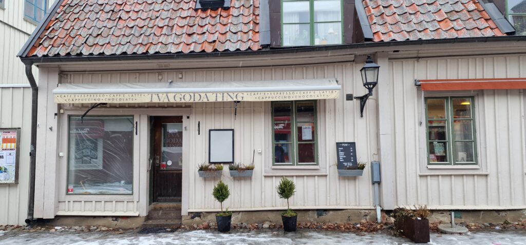 Sofie har drivit Två goda ting i 16 år och tanken har hela tiden varit att det både ska vara ett trevligt fik och en butik, där man kan handla, kaffe, te, choklad och presenter. Nu vill man bara helt enkelt göra finare i lokalen.