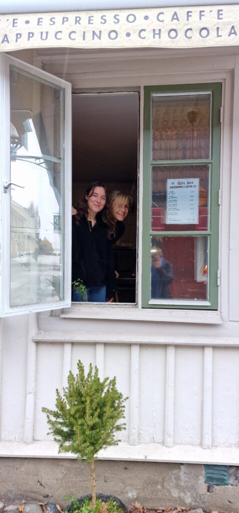 Nu under renoveringen, som kommer att pågå till någon gång i april, kan man köpa kaffe, kakor och lite varor som kaffebönor och te. Då får man handla utanför i en lucka, där man kommer att mötas av Nike Eliasson de dagar det är vackert väder och kan tänkas komma några kunder.