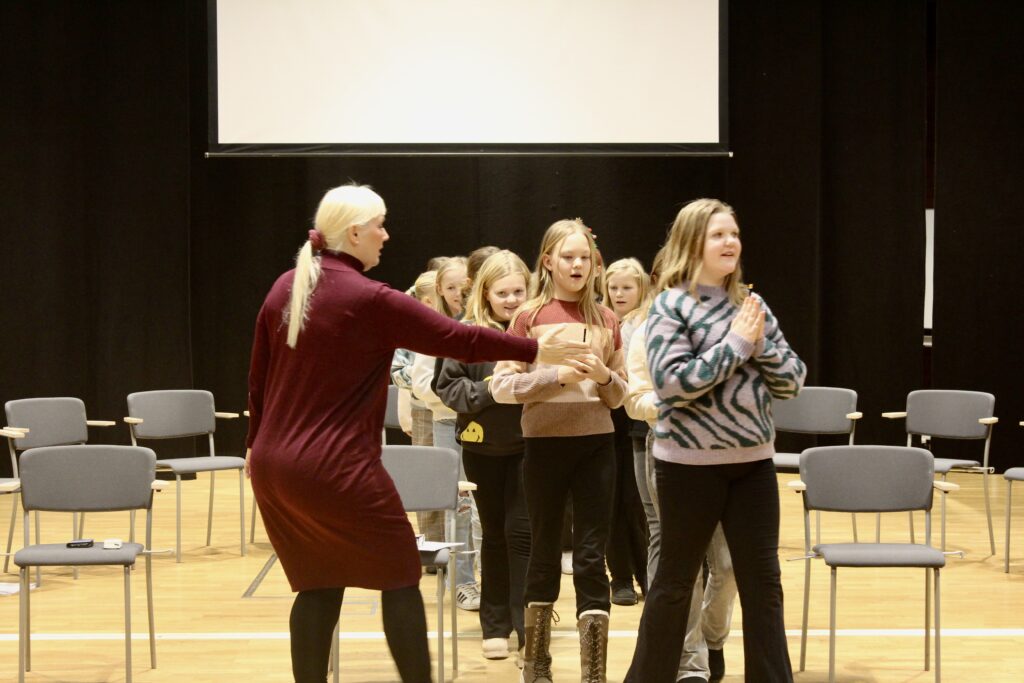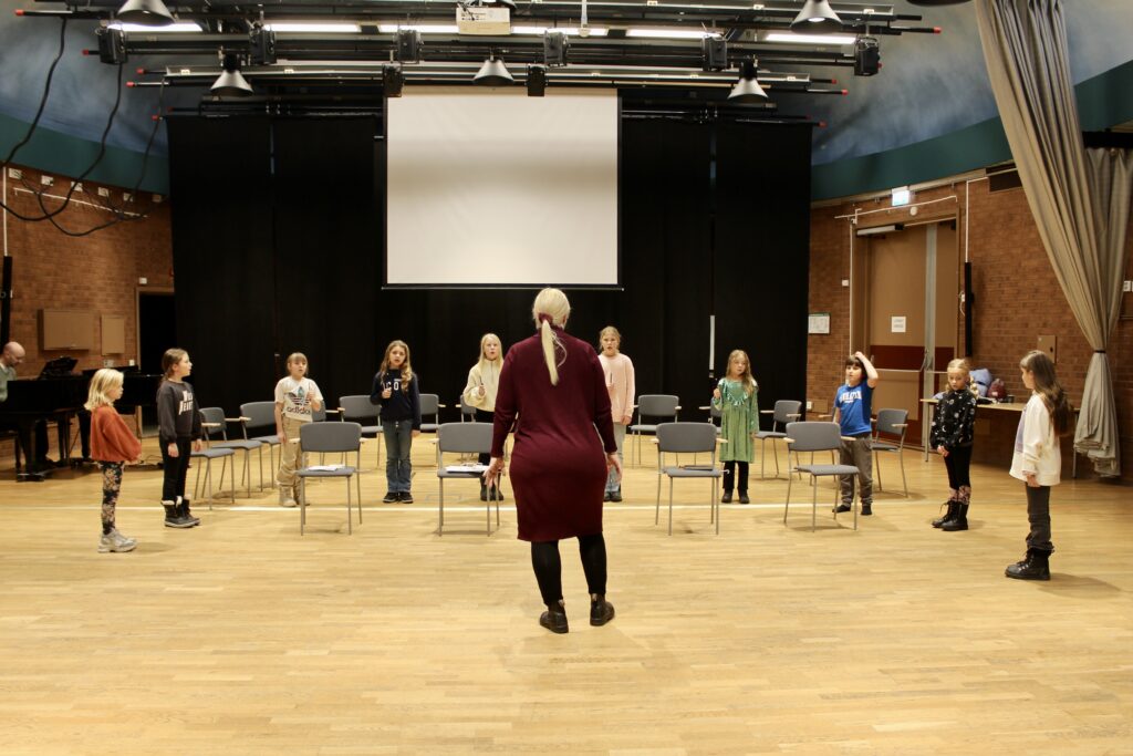 Barnkören som Lotta har lett sedan september i år består av 28 elever. Först övar elever från årskurs 4–5 och därefter elever från årskurs 2–3. För att få det extra pampigt och häftigt har Lotta även bjudit in blåsorkestrar.