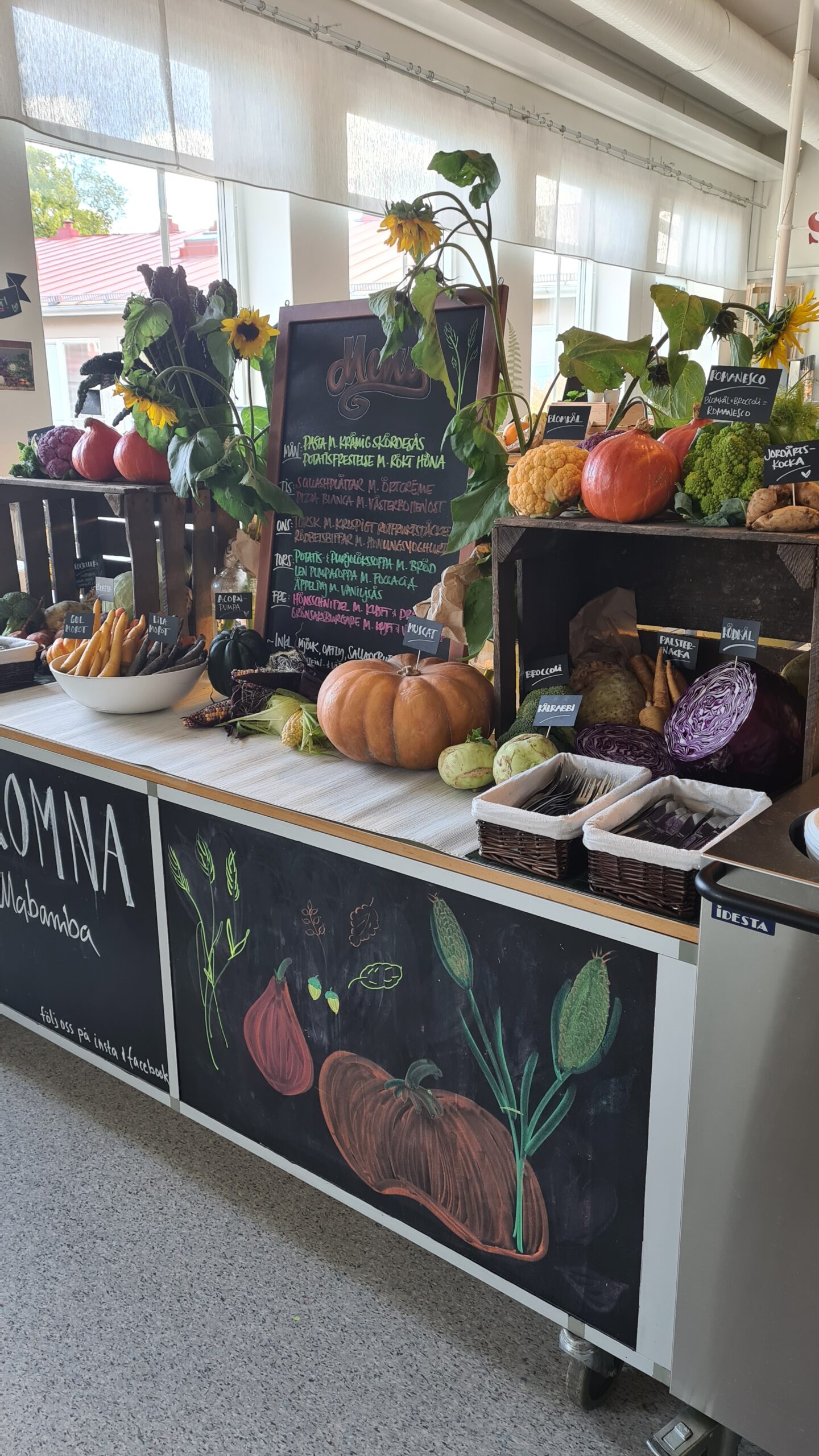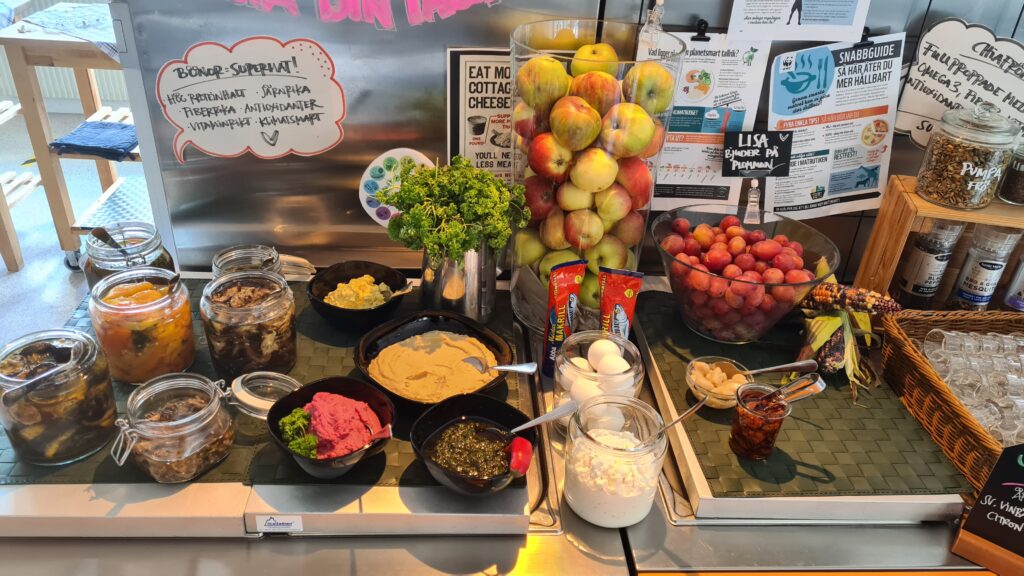 - Miljön jobbar vi också mycket med. Vi har försökt göra det så ombonat och restauranglikt som möjligt. Många har bilden av hur det såg ut när man själv gick i skolan, men här jobbar vi med mycket växter, färska örter och tavlor, så att det verkligen blir ombonat. Det känns väldigt trevligt i vår lilla matsal.