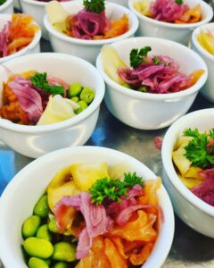 - Vi serverar sushi om de vill ha det och så vidare. Önskar de någonting, så får de det, fast i vår tappning. Vi har väldigt matglada och öppna gäster, ska jag säga.