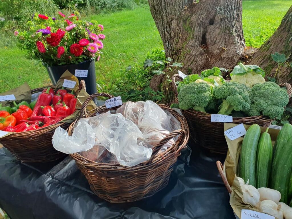 Marknaden hade ett stort varierat utbud med allt från grönsaker, honung och ägg till blommor, kransar, blomsterarrangemang, chutney, sylt och saft. Dessutom fanns konsthantverk och fika.