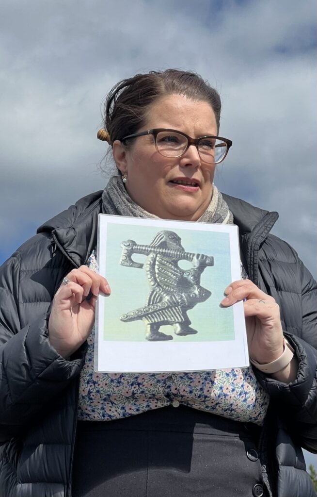 2015 grävde man delvis ut en grav vid Klahammar, inte alltför långt från Åsa och där återfanns lämningar av en man och dessutom flera hästar. Det som var mest uppseendeväckande var fyndet av en två till tre centimeter hög amulett i silver och den föreställer en vikingakrigare utrustad med både yxa och svärd. På en av bilderna håller Sofia upp ett foto av amuletten.