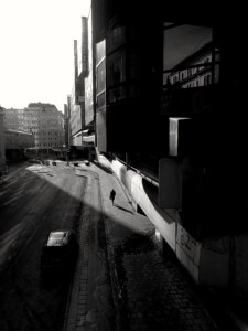 Malin visar en gatubild med en väldigt skarp skugga.