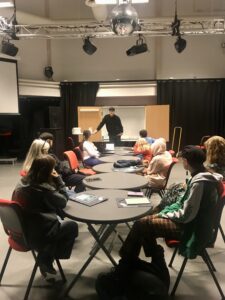 Samtidigt som några elever befann sig på tavernan, satt ett annat gäng på Multeum för att lyssna på författaren Jacob Lindfors. Kursen ”Vässa pennan” består av fyra tillfällen där skrivsugna elever får träffa författare och journalister.