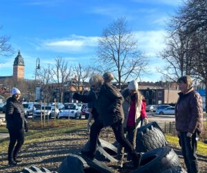 - Man kan gå över bänkar och under skyltar, eller över staket och räcken ute på stan. Folk tittar, vinkar, är nyfikna och säger: ”Ja det är tantparkouren som är igång.”