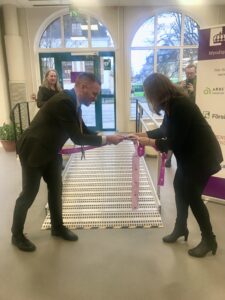 Förutom civilminister Erik fanns också äldre- och socialförsäkringsminister Anna Tenje med vid invigningen. Även kommunstyrelsens ordförande Jacob Högfeldt var på plats.