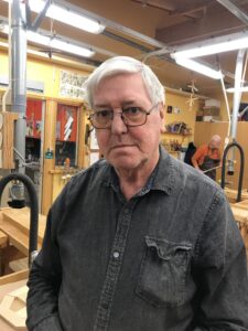 Sven har varit med i två och ett halvt år och har själv snickrat en del hemma, men mest hus och altaner. Han berättar att han inte kunde någonting om slöjd innan han kom hit.