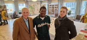 Jacob Lönnebring från Enhörna tittar på utställningen i sällskap med Warren Brandt och Viktor Elgholm från Mariefred. De är kritiska till planerna som presenterats.