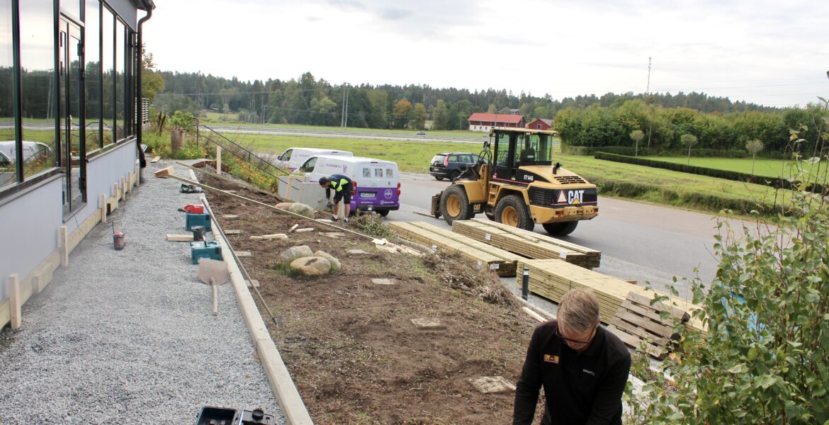 MariefredStyvmorsviol, rosenskära, vintersallad och persilja, ännu i september blomstrar det i pallkragarna på Jakob Ulfssons väg. Cathrine Stribbling är en av hyresgästerna som fått möjlighet att odla på gården utanför huset där hon bor.