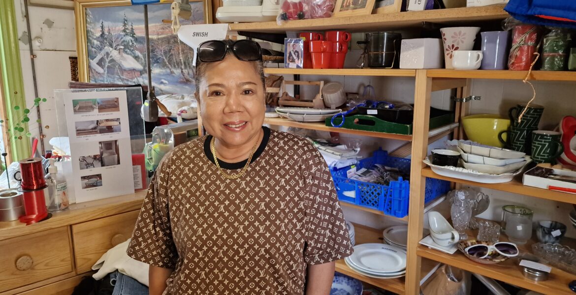 MariefredMånga beundrar den gamla vackra fasaden, där det en gång låg en fiskbutik intill torget i Mariefred. Idag är den affären sedan länge borta och istället är det loppis här när vädret är fint. Det är Lek Hernfalk, som tillsammans med sin man Mikael säljer allt mellan himmel och jord.