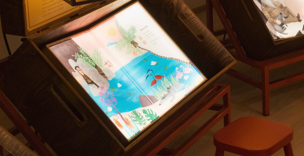 NykvarnEn resa över Östersjön är en vandringsutställning som man just nu kan se på Nykvarns bibliotek. Här presenteras tio finländska bilderböcker för barn.
