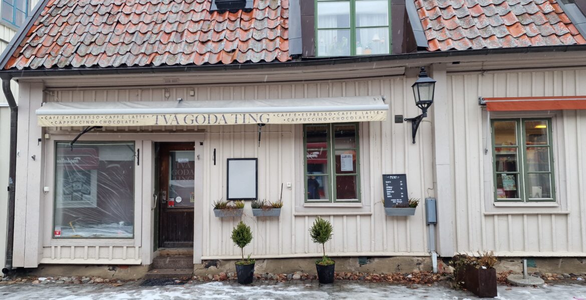 MariefredAlla kaffe- och chokladsugna som går förbi möts just nu bara av plasttäckta fönsterrutor och en lapp med en pil till luckan, där man vid fint väder kan köpa kaffe och kakor. "Vi har tänkt renovera länge, så nu fräschar vi upp. Tyvärr kan vi inte berätta exakt hur det kommer se ut för att det är lite hemligt", säger Sofie Hansson, som äger Två goda ting.